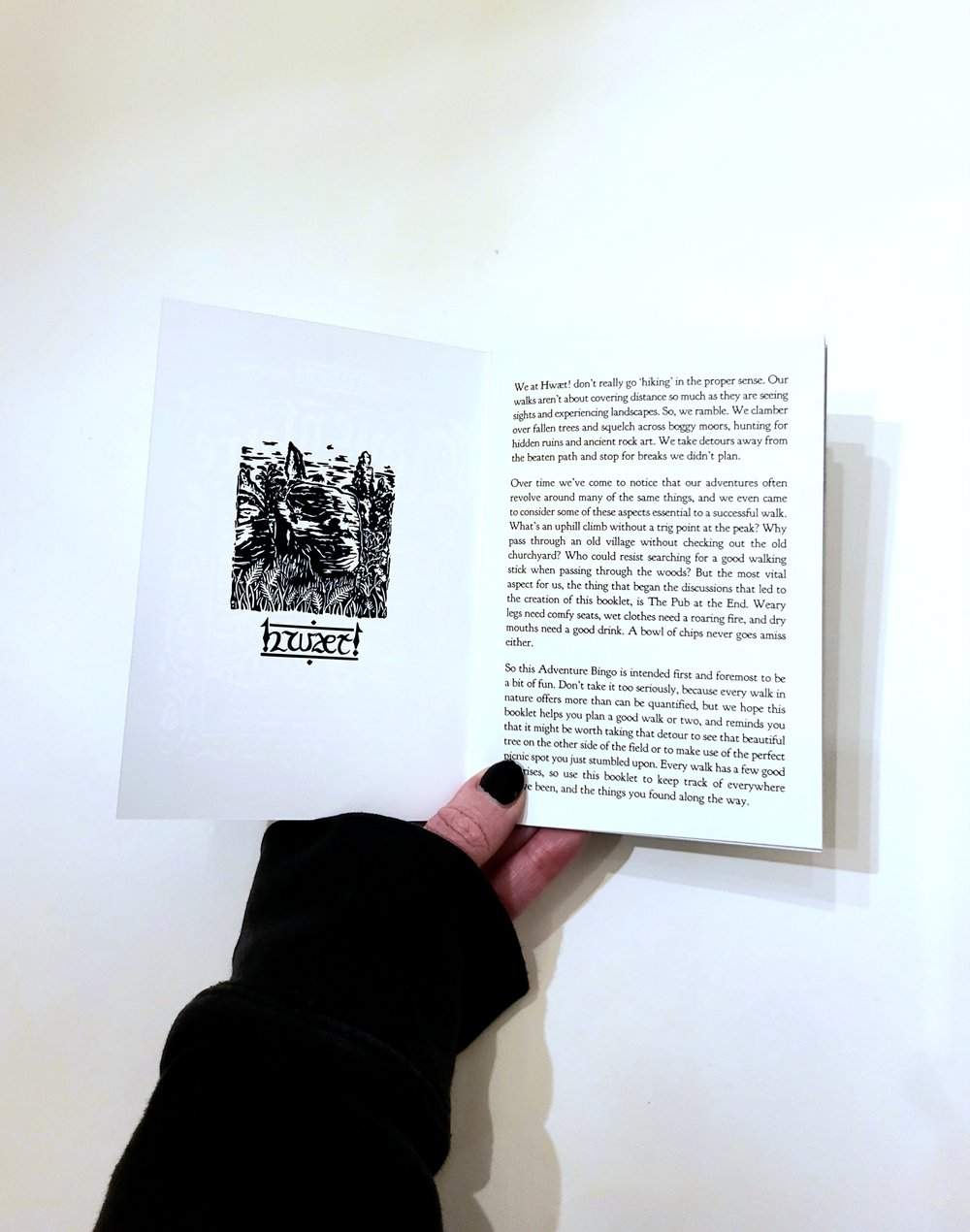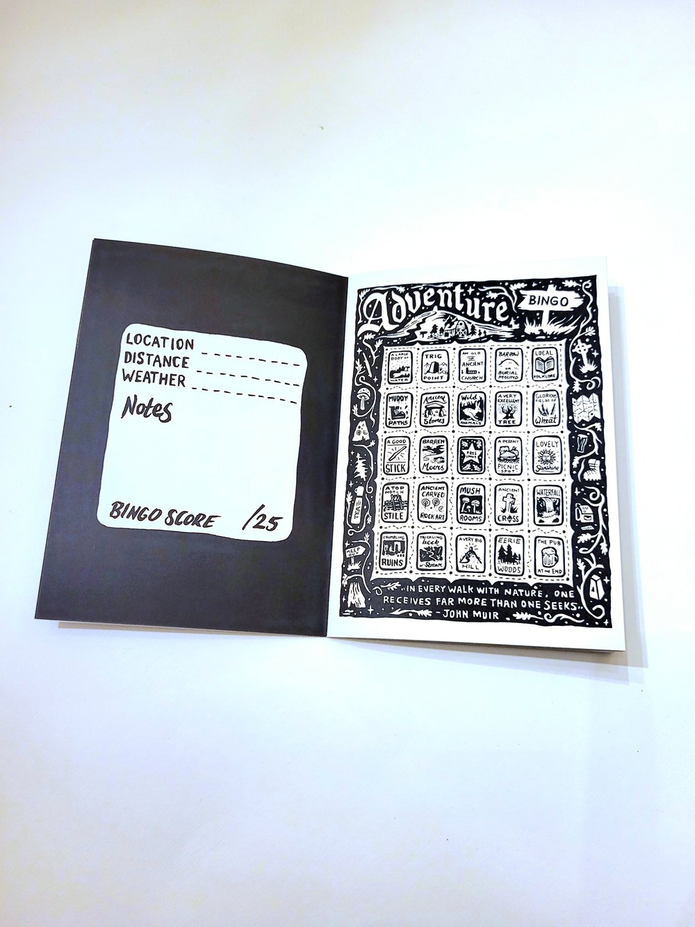 This pocket-sized A6 booklet lets you record your walks and rank them on our very own Adventure Bingo, designed here at Hwaet! HQ and illustrated by Bunty May Marshall. Featuring iconic British landmarks like ancient stones and trig points, alongside more elusive sights like wild animals and mushrooms, it's sure to turn any walk into an adventure.